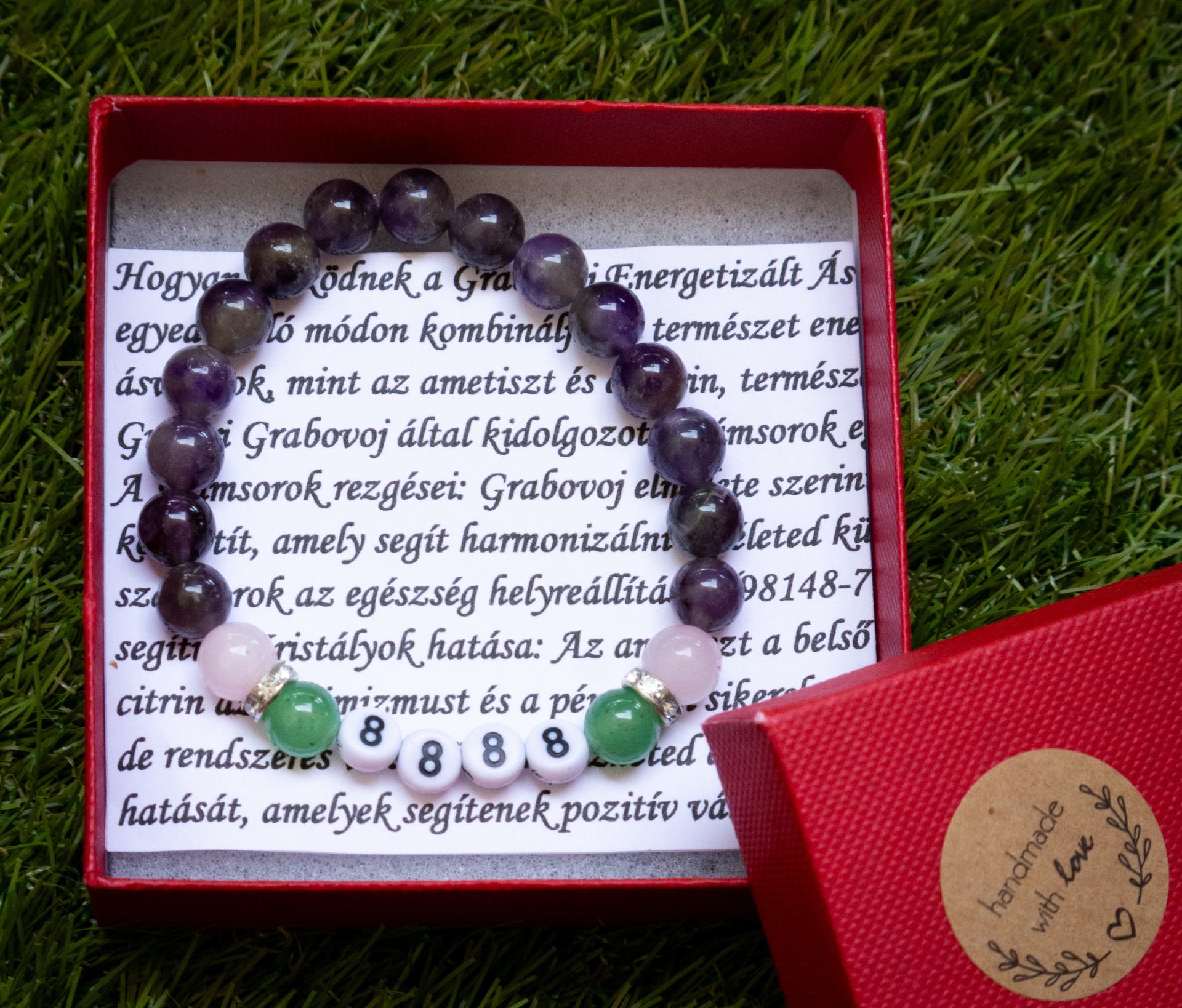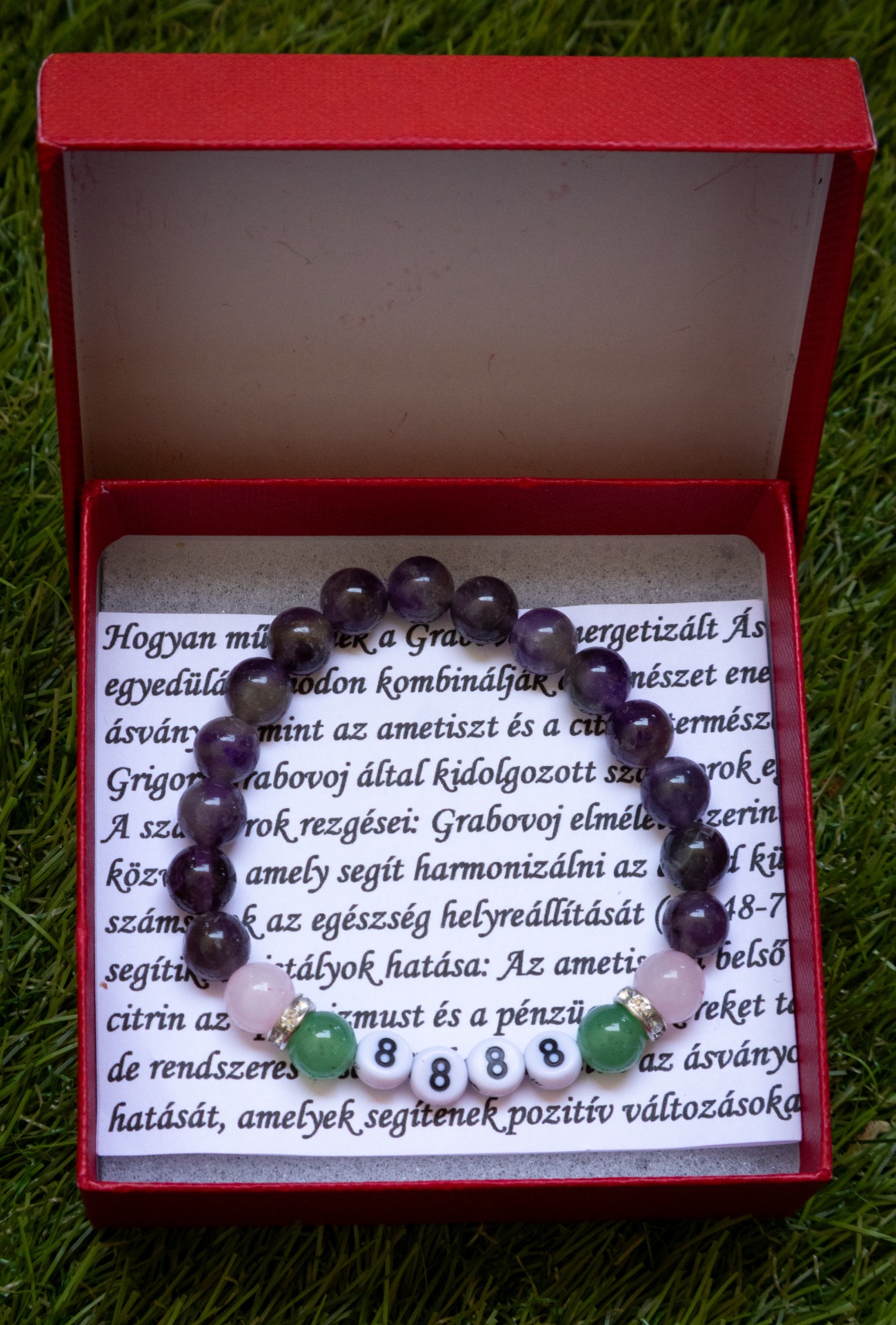 Fő ásványok: rózsakvarc, ametiszt, aventurin 8mm.