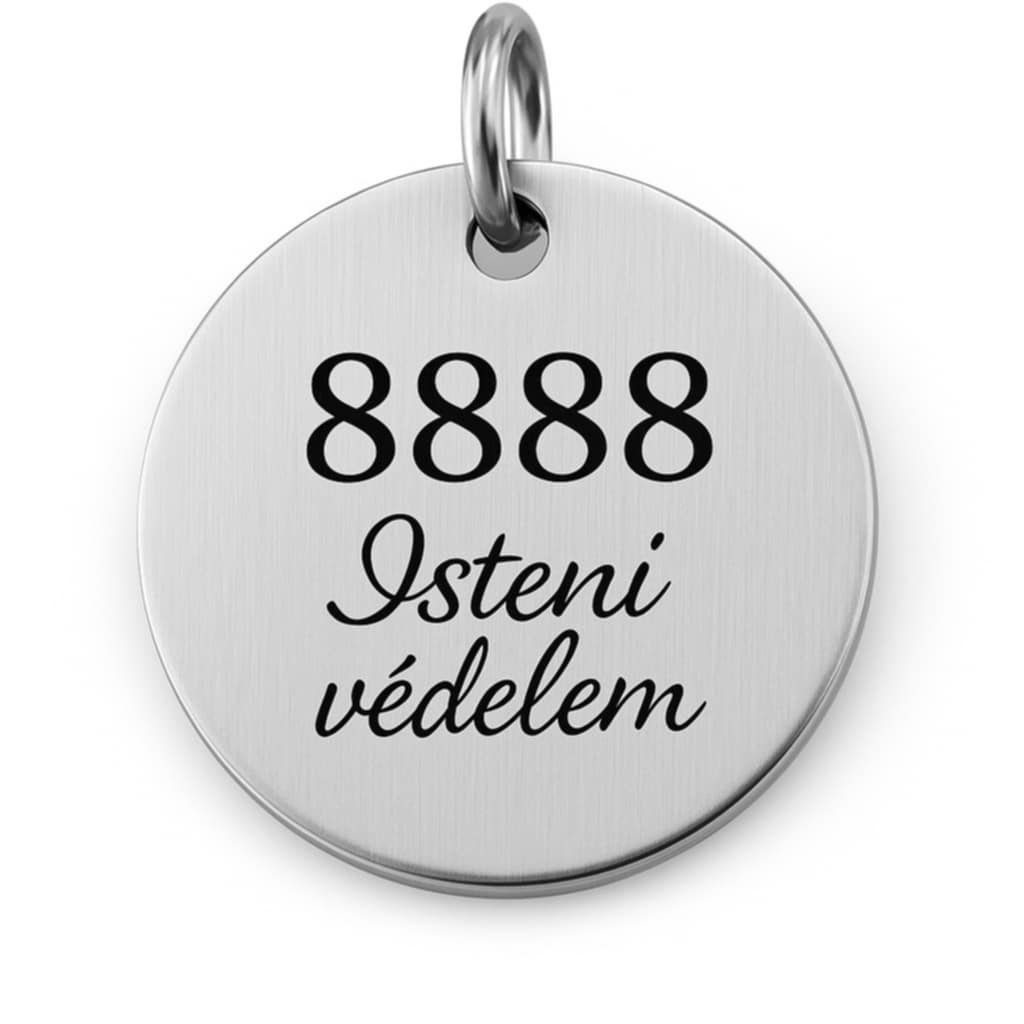 Medál mérete: 2 cm átmérő Gravírozás: "8888" és "Isteni védelem" felirat.